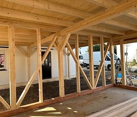 Alle Car-Ports werden in zimmermannsmäßiger Bauweise hergestellt. Die Holzverbindungen sind gezapft oder geplattet.