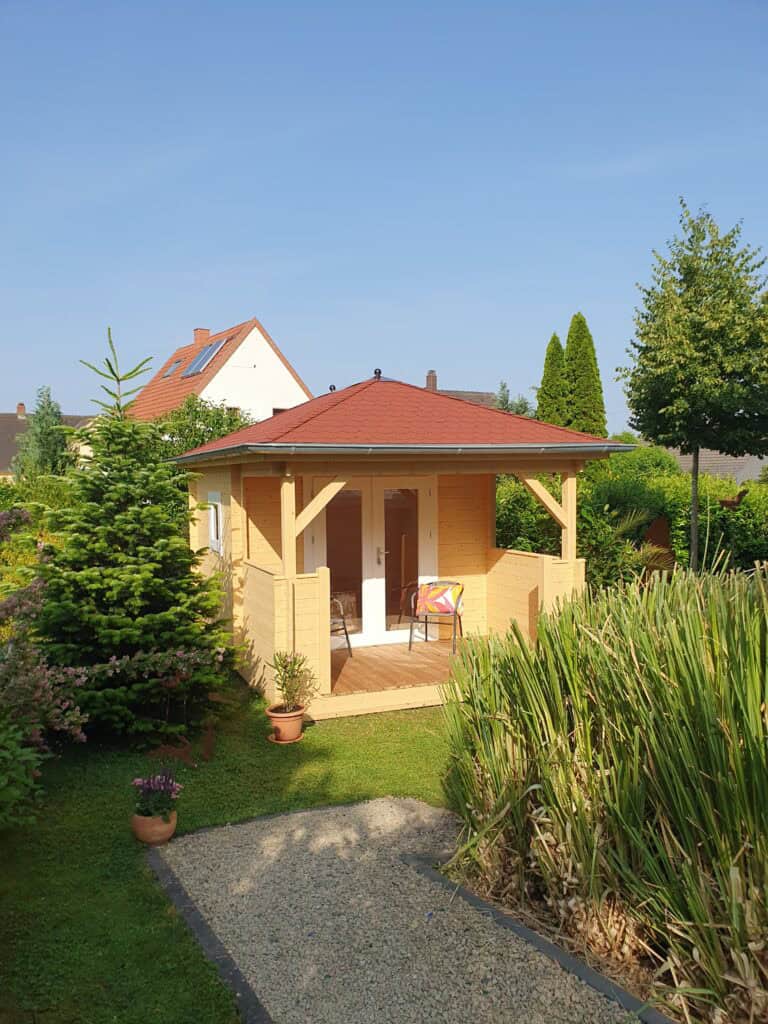 Gartenmöbel, Auflagen und Grill können permanent draußen bleiben – das ständige hin und her Räumen entfällt, der Wetterbericht wird nebensächlich.