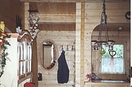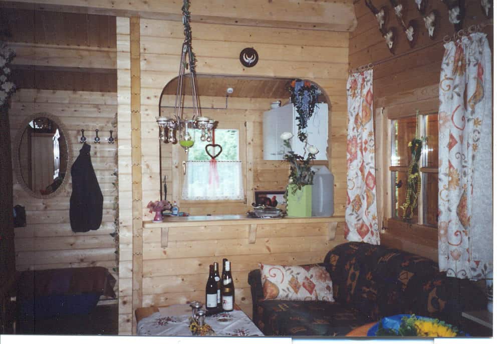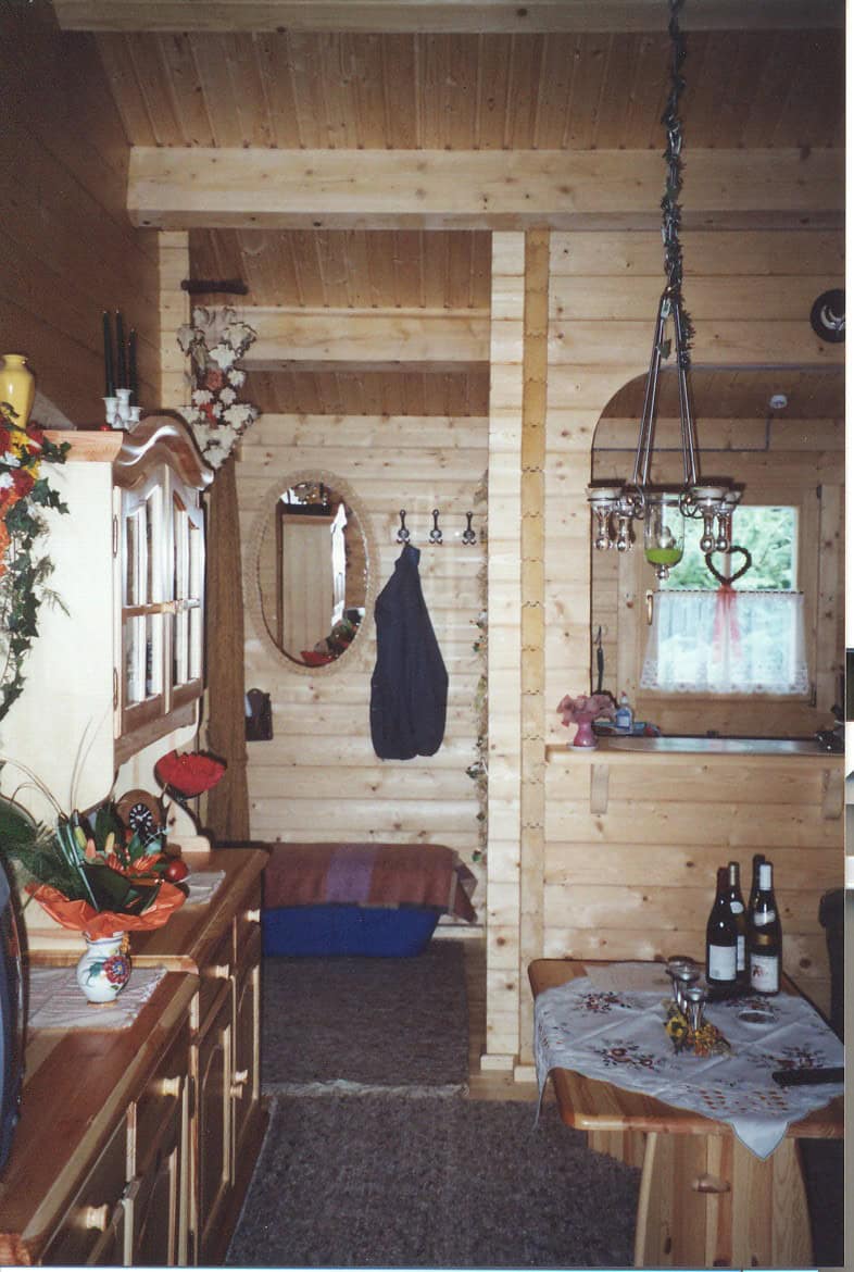 | Wände : | Die Außen- und Innenwände bestehen aus massiven Fichtenblockbohlen mit doppelter, keilförmiger Nut und Feder. Die Eckverbindungen sind 4- fach gefräst (Spezialfräsung). |