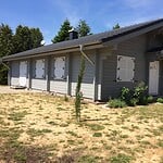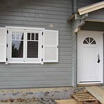 | Fenster : | Isolierverglaste Fenster verschiedener Größen, ein- oder zweiflügelig, aus Nadelholz mit 1- Hand Dreh / Kippbeschlag, umlaufender Gummidichtung, Alu- Regenleiste, aufgesetzteSprossen. Fenster mit massivem Schlagladen, verzinkten Beschlägen und innerer Verriegelung. |