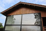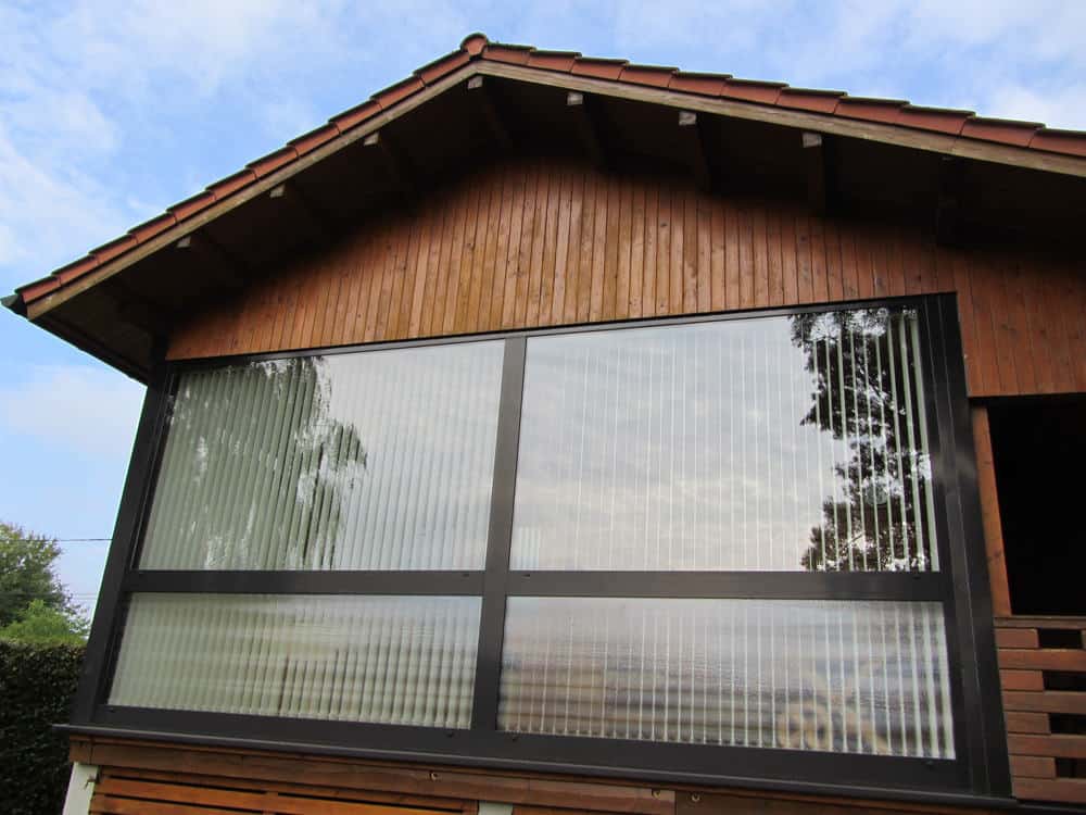 | Fenster : | Isolierverglaste Fenster verschiedener Größen, ein- oder zweiflügelig, aus Nadelholz mit 1- Hand Dreh / Kippbeschlag, umlaufender Gummidichtung, Alu- Regenleiste, aufgesetzteSprossen. Fenster mit massivem Schlagladen, verzinkten Beschlägen und innerer Verriegelung. |