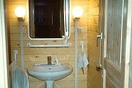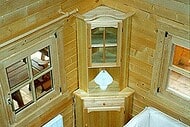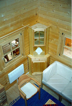 | Wände : | Die Außen- und Innenwände bestehen aus massiven Fichtenblockbohlen mit doppelter, keilförmiger Nut und Feder. Die Eckverbindungen sind 4- fach gefräst (Spezialfräsung). |