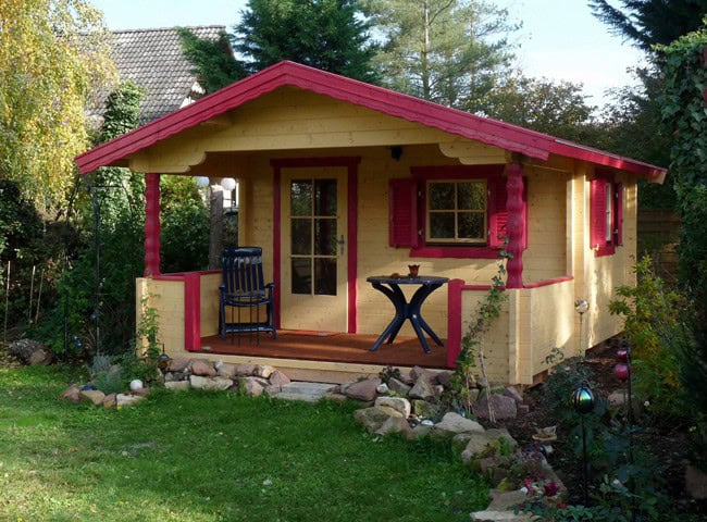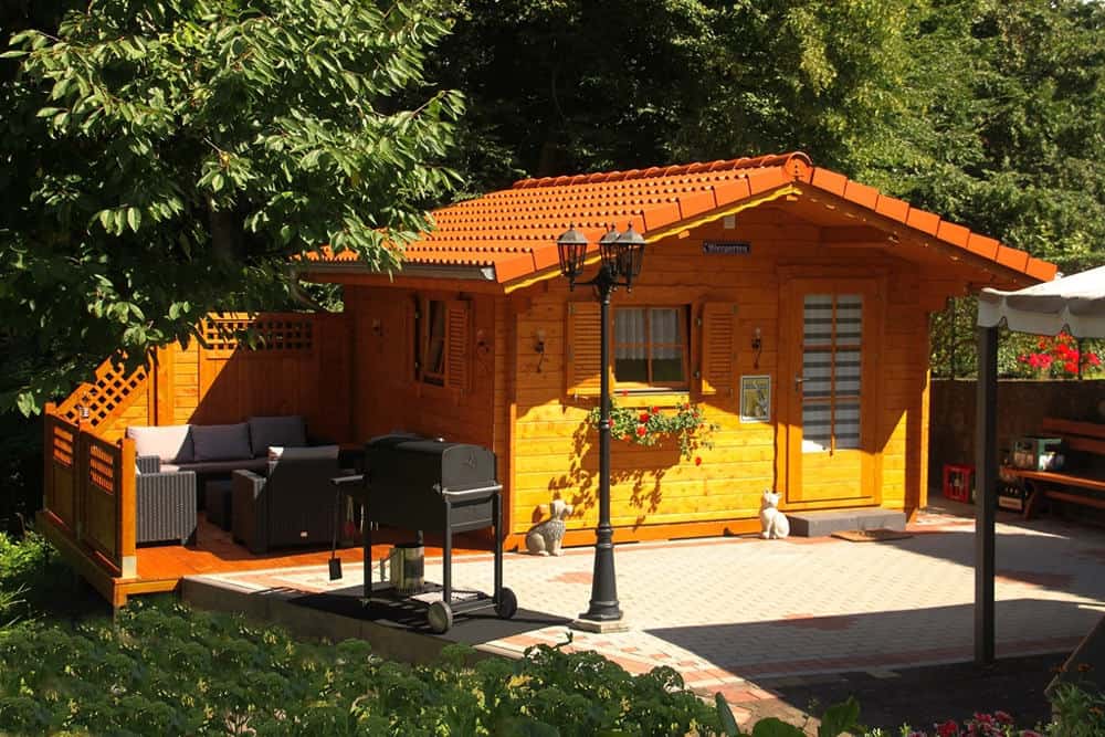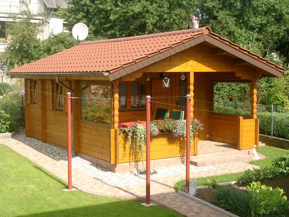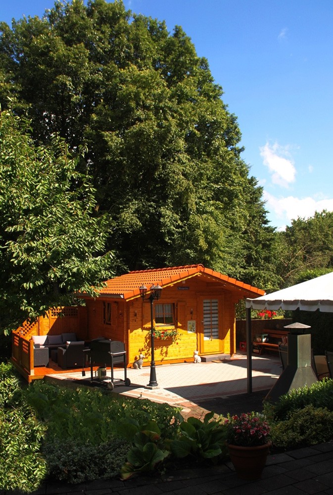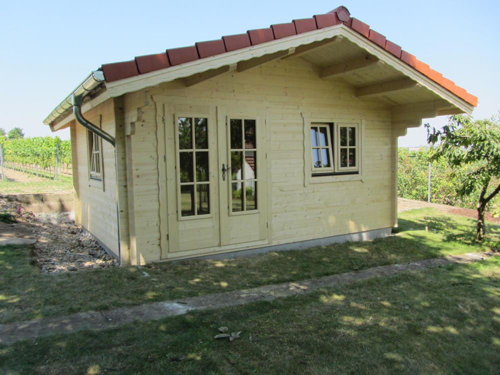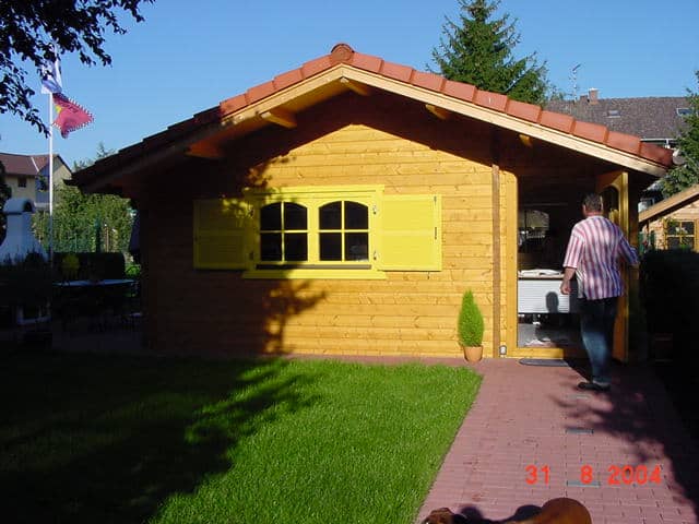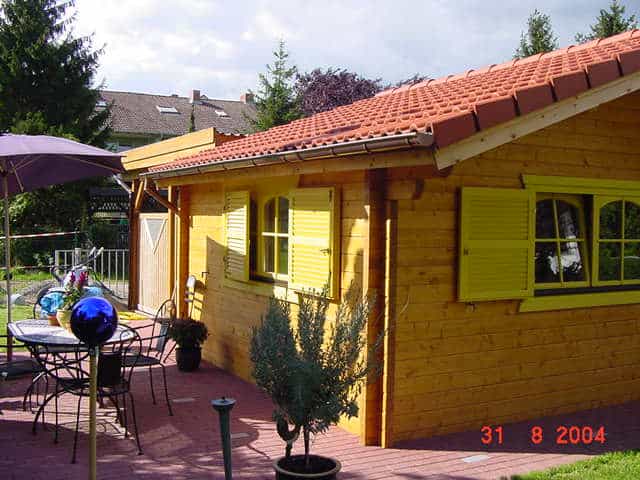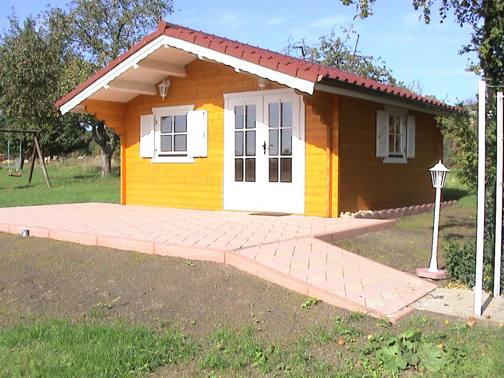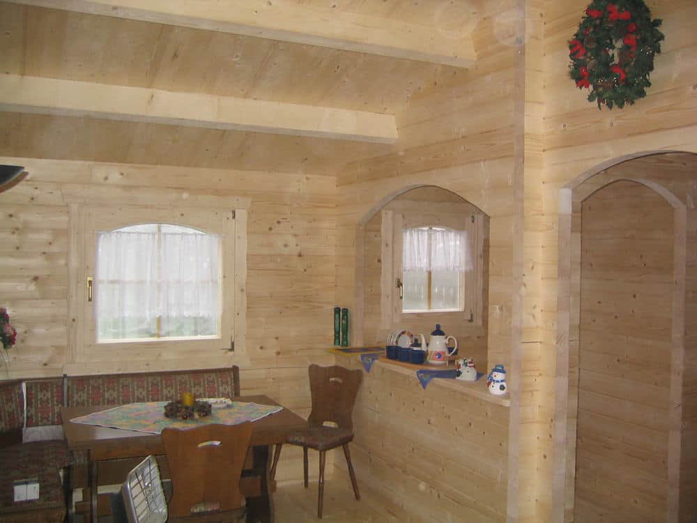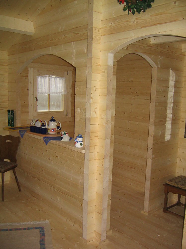 | Wände : | Die Außen- und Innenwände bestehen aus massiven Fichtenblockbohlen mit doppelter, keilförmiger Nut und Feder. Die Eckverbindungen sind 4- fach gefräst (Spezialfräsung). |