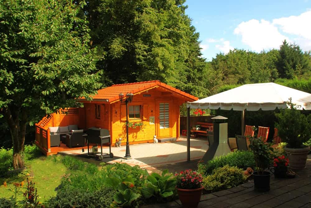 | 5,00 m X 4,00 m zuzüglich Terrasse 5,00 m X 2,00 m Wohnraum, Küche mit Theke, Bad, Flur |