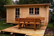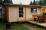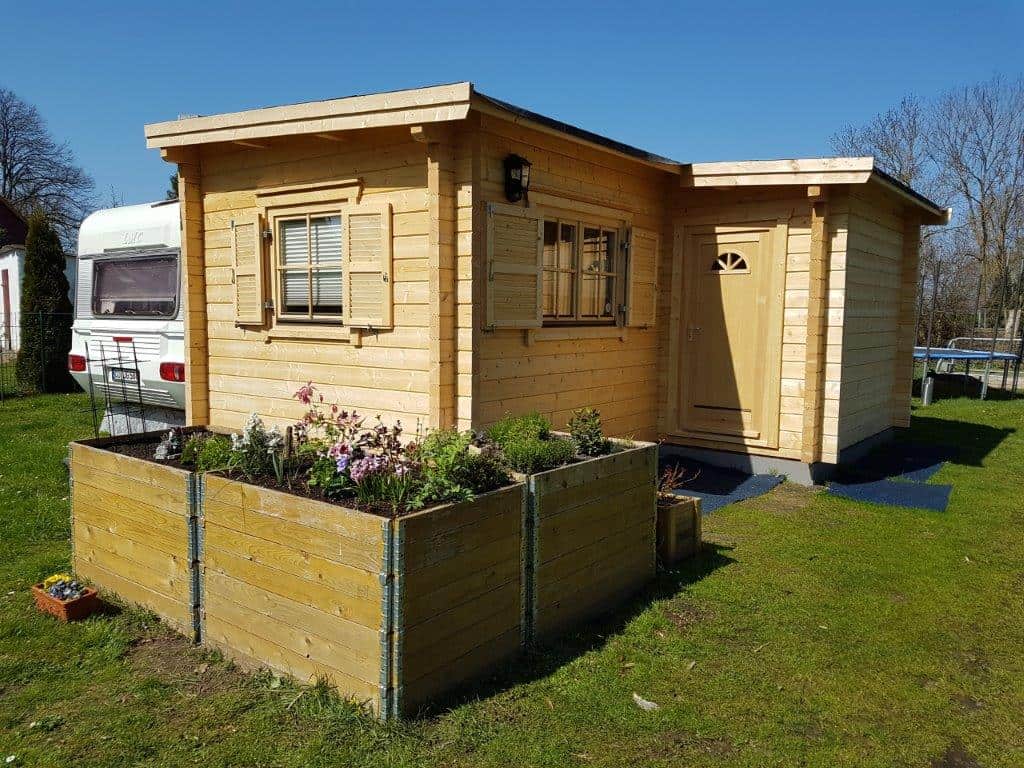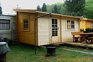 Wir fertigen individuelle Vorbauten für Ihren Wohnwagen als Blockhaus. Der Vorbau ersetzt passgenau das Vorzelt.