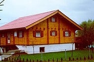 | Dach : | Sichtschalung von der Traufe bis zum First bestehend aus 19 mm dicken Nut- und Federbrettern. An den Giebelseiten ein doppeltes Schirmbrett, an der Traufe gefalzte Traufblenden. Die Dachkonstruktion ist statisch für eine Ziegeleindeckung ausgelegt. |