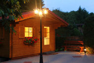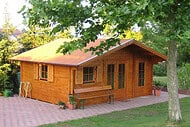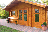 | Wände : | Die Außen- und Innenwände bestehen aus massiven Fichtenblockbohlen mit doppelter, keilförmiger Nut und Feder. Die Eckverbindungen sind 4- fach gefräst (Spezialfräsung). |