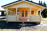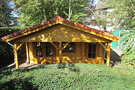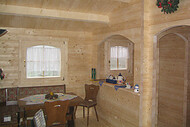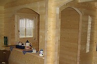 | Wände : | Die Außen- und Innenwände bestehen aus massiven Fichtenblockbohlen mit doppelter, keilförmiger Nut und Feder. Die Eckverbindungen sind 4- fach gefräst (Spezialfräsung). |