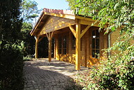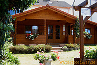 | Dach : | Sichtschalung von der Traufe bis zum First bestehend aus 19 mm dicken Nut- und Federbrettern. An den Giebelseiten ein doppeltes Schirmbrett, an der Traufe gefalzte Traufblenden. Die Dachkonstruktion ist statisch für eine Ziegeleindeckung ausgelegt. |